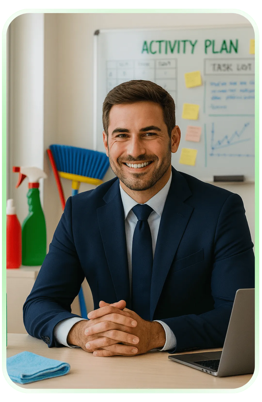 No. You're not the cleaner, you're the CEO. You'll hire professional cleaners to handle all the physical work. Your job is to run the system: bringing in customers, coordinating bookings, and overseeing operations. Most of which can be delegated to virtual assistants once you're up and running.