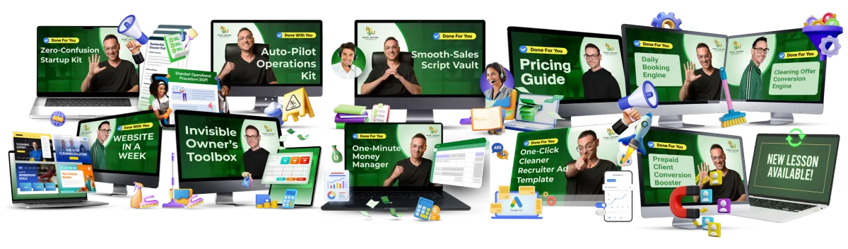 👉 The cleaning industry evolves, and so does your training. I review and refresh the program regularly to keep it cutting-edge. If a tactic ever becomes outdated, we replace it with a new, proven lesson so you’re always running on the latest and most effective strategies.